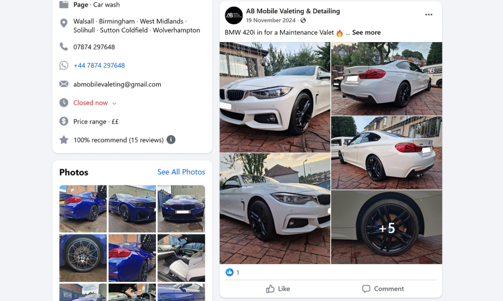 One of the most powerful tools for promoting your mobile valeting business is social media. Millions of people use social sites like Facebook and Instagram to find local businesses online.