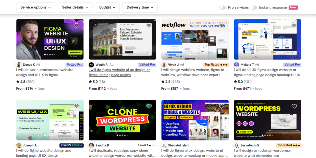 - Hire a low-cost web designer on Upwork or Fiverr.